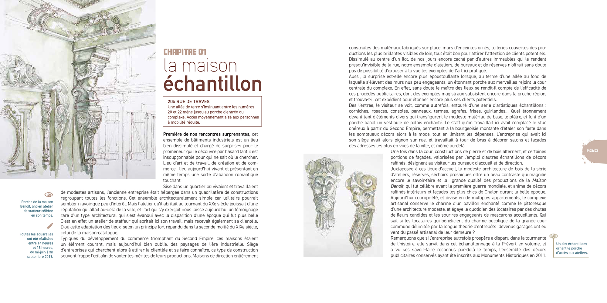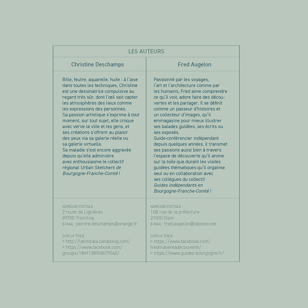 L’idée est de créer une série de livrets-guides issus de la collaboration entre un guide-historien et une illustratrice “croqueuse”, différente pour chaque ville visitée. Les auteurs proposent des balades subjectives tout en apportant des éléments historiques textuels…