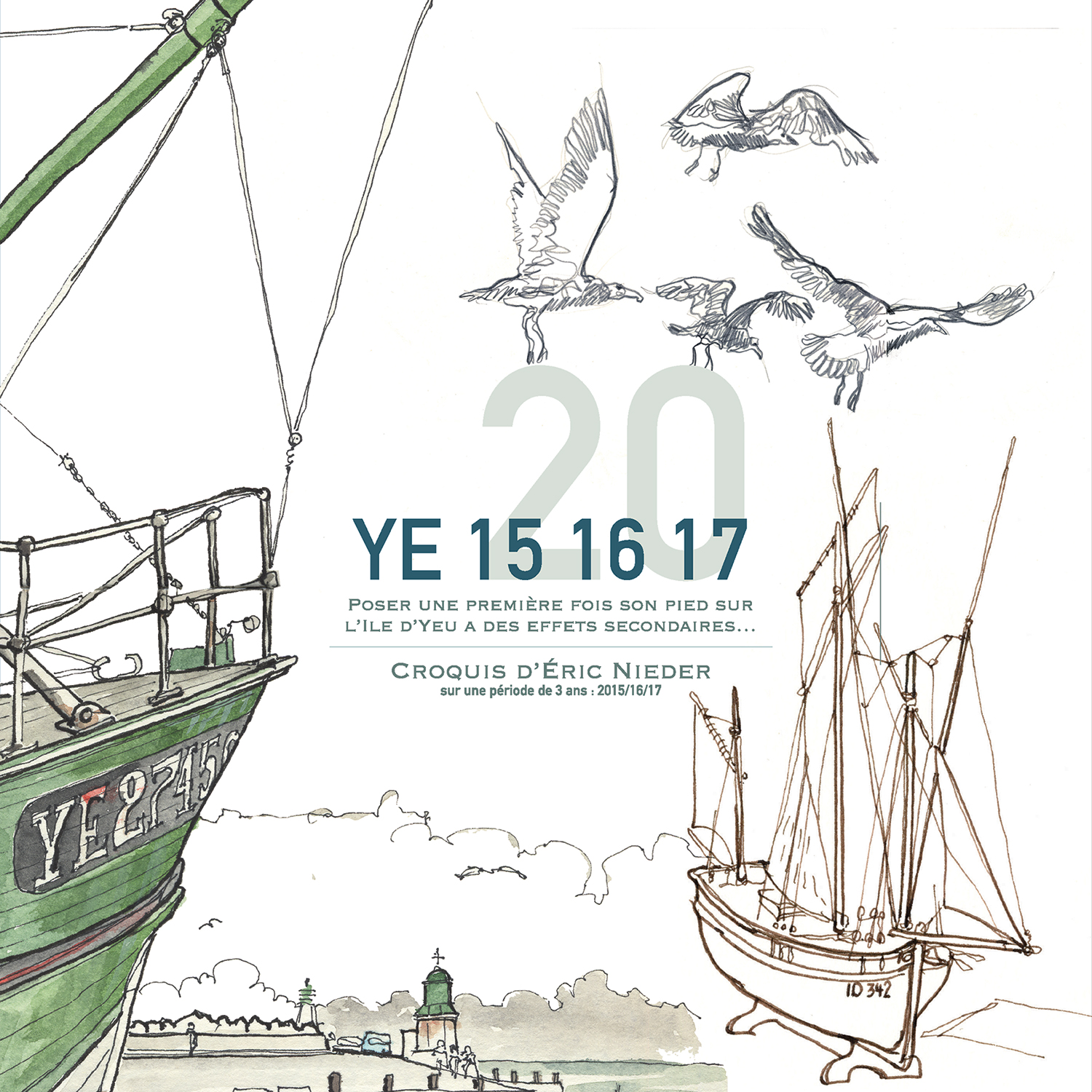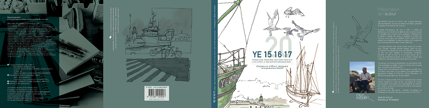 Éric Nieder souhaitait présenter ses croquis issus de ses séjours sur l’île d’Yeu durant une période de 3 ans, d’où la conception et création graphique d’un livre portfolio.