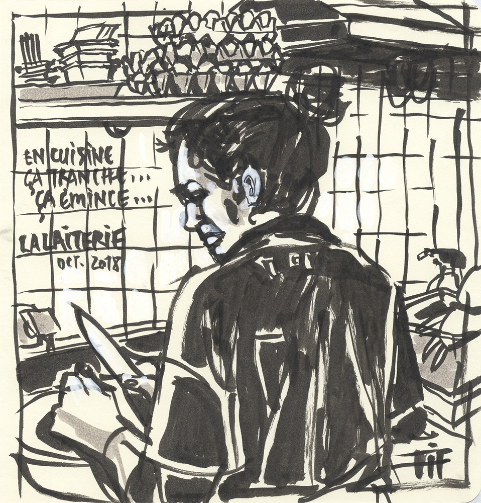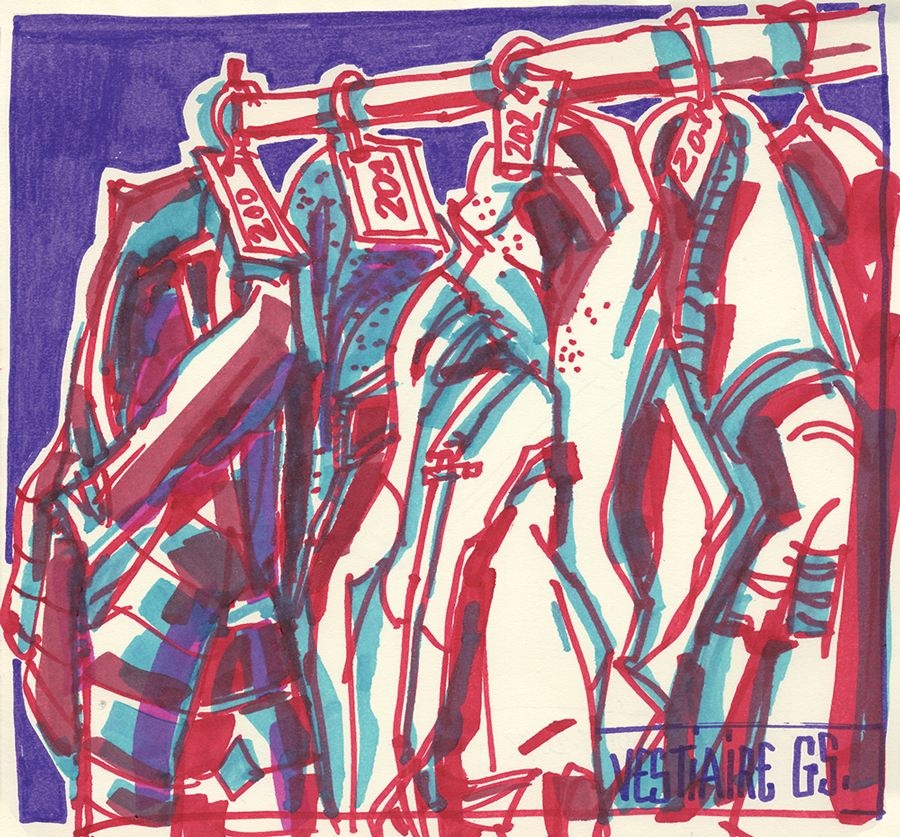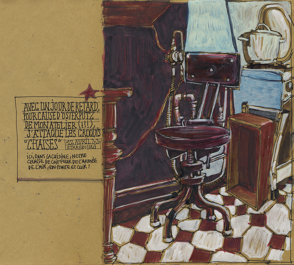 Avec un jour de retard, pour cause d’osterputz de mon atelier (!!!) j’attaque les croquis “chaises” (double page de carnet de croquis)
