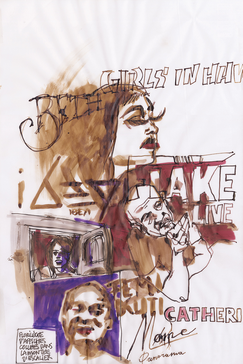 Encre de chine + brou de noix + feutres sign pen + Liquitex blanc