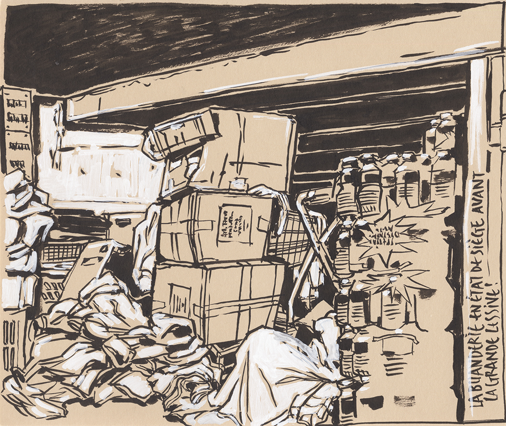 Encre de chine + brou de noix + encre Fatima bleue-noire + crayon blanc