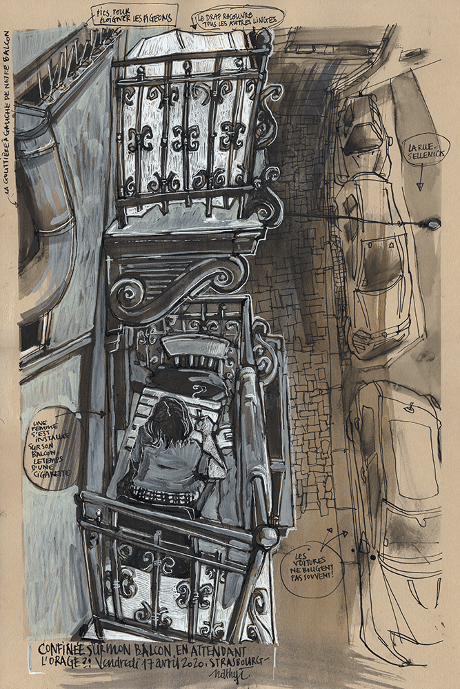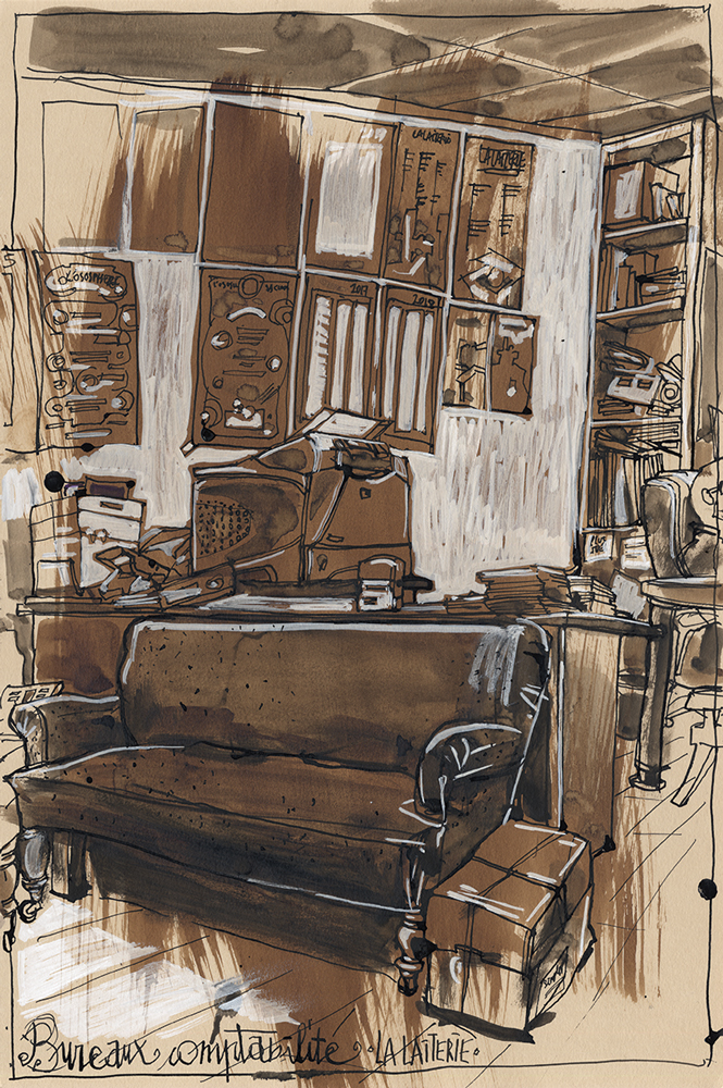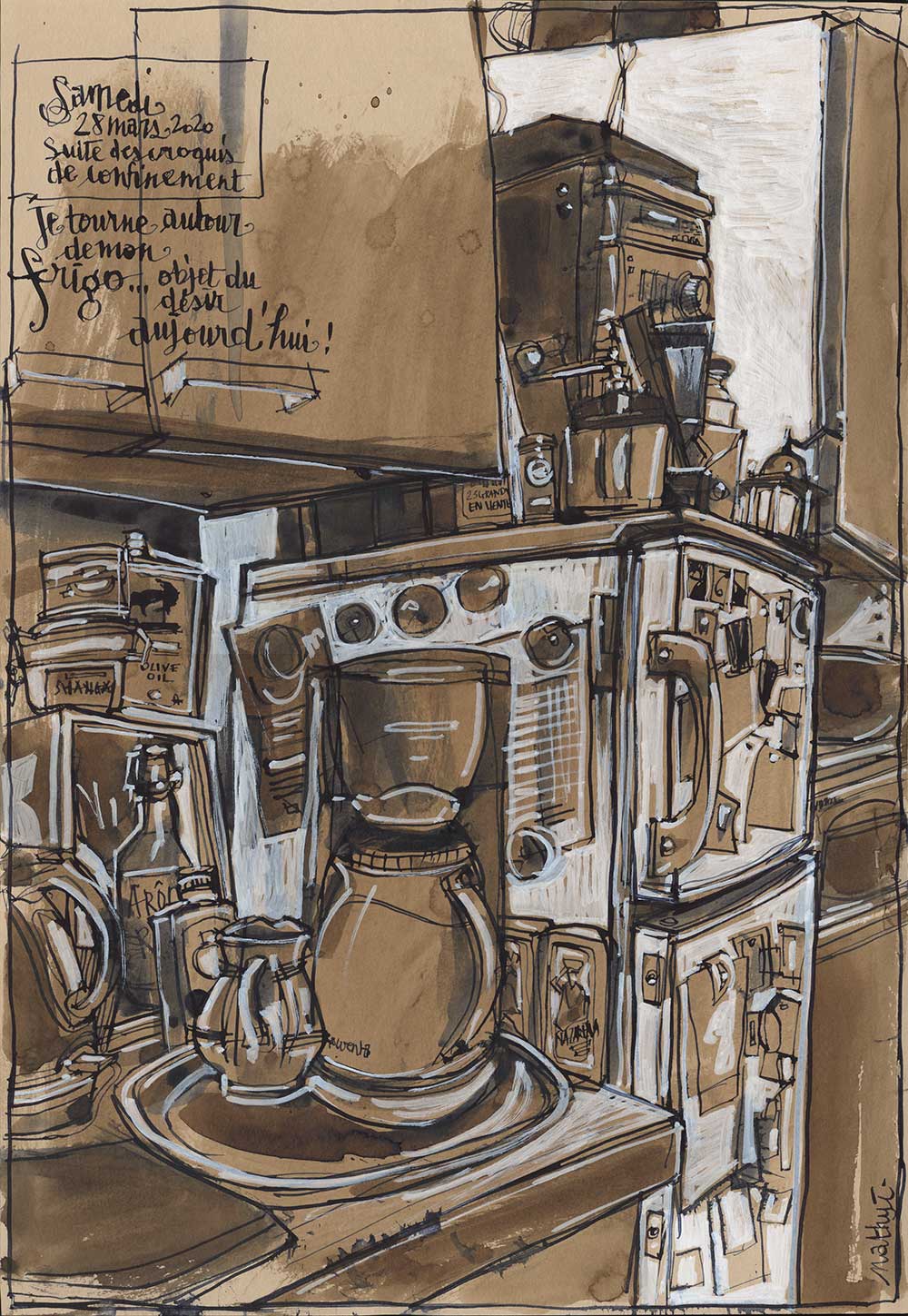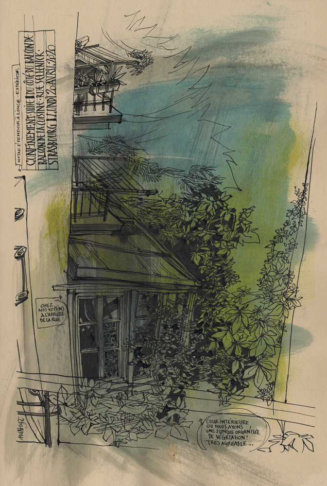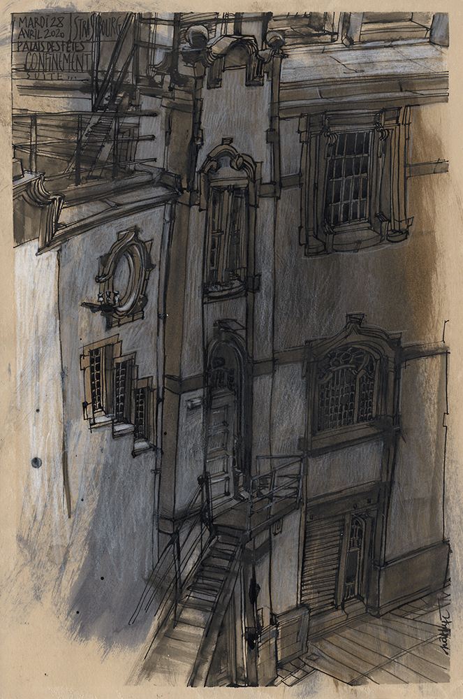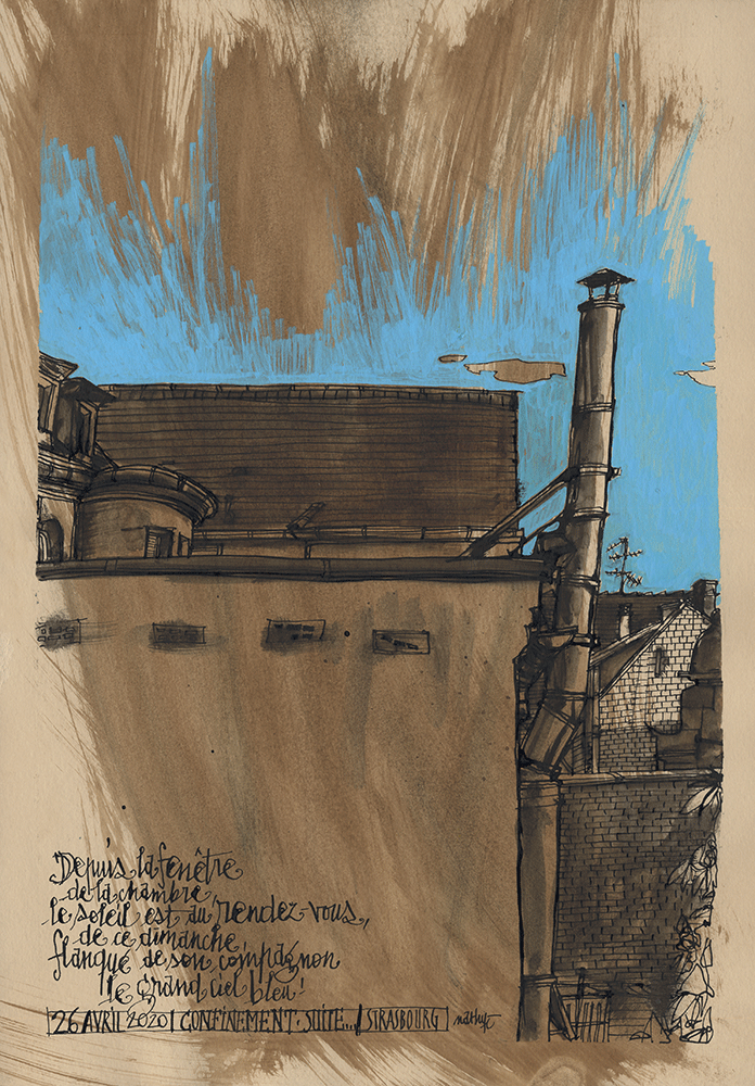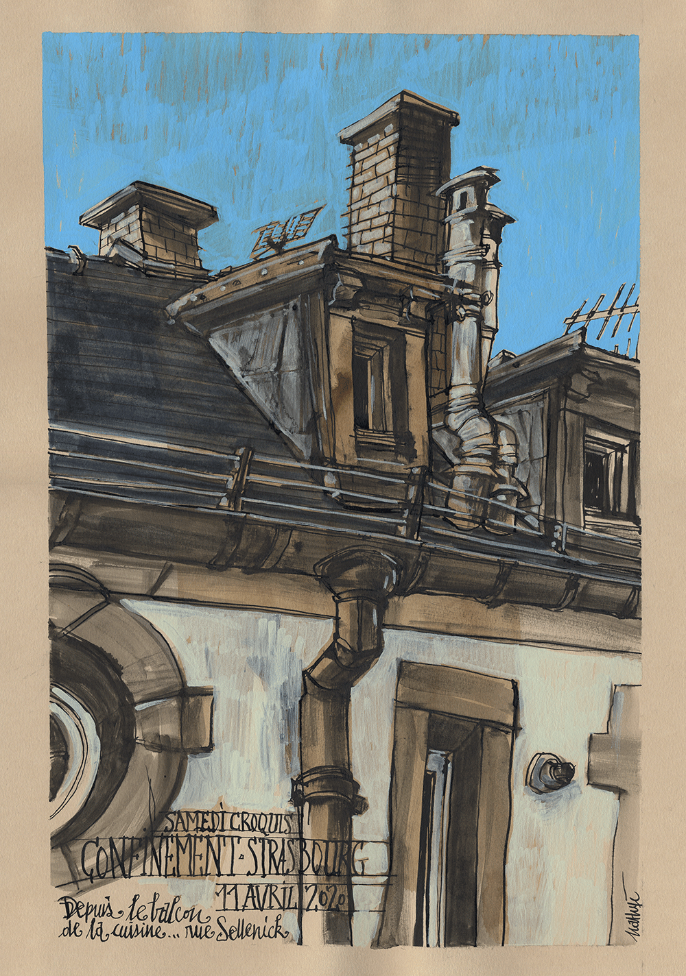 Encre de chine + brou de noix + feutre Sign pen + crayons blanc et gris