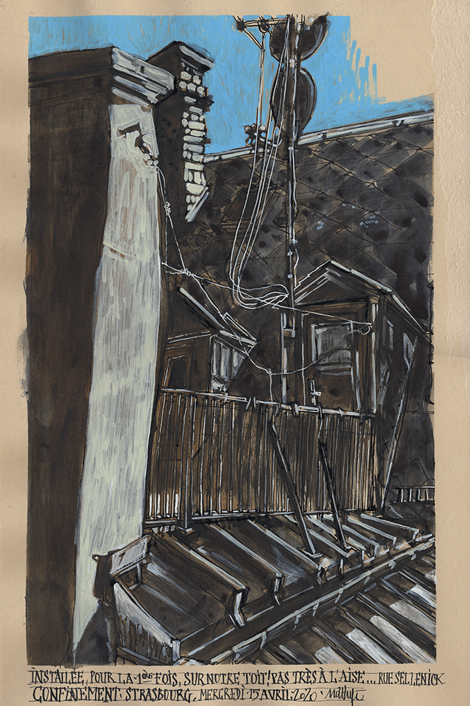 Installée pour la 1ère fois sur notre toit. Pas très à l’aise…