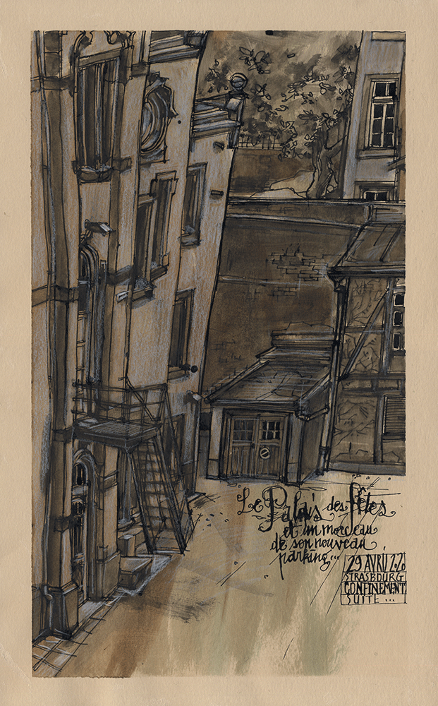 Le Palais des Fêtes et un morceau de son nouveau parking