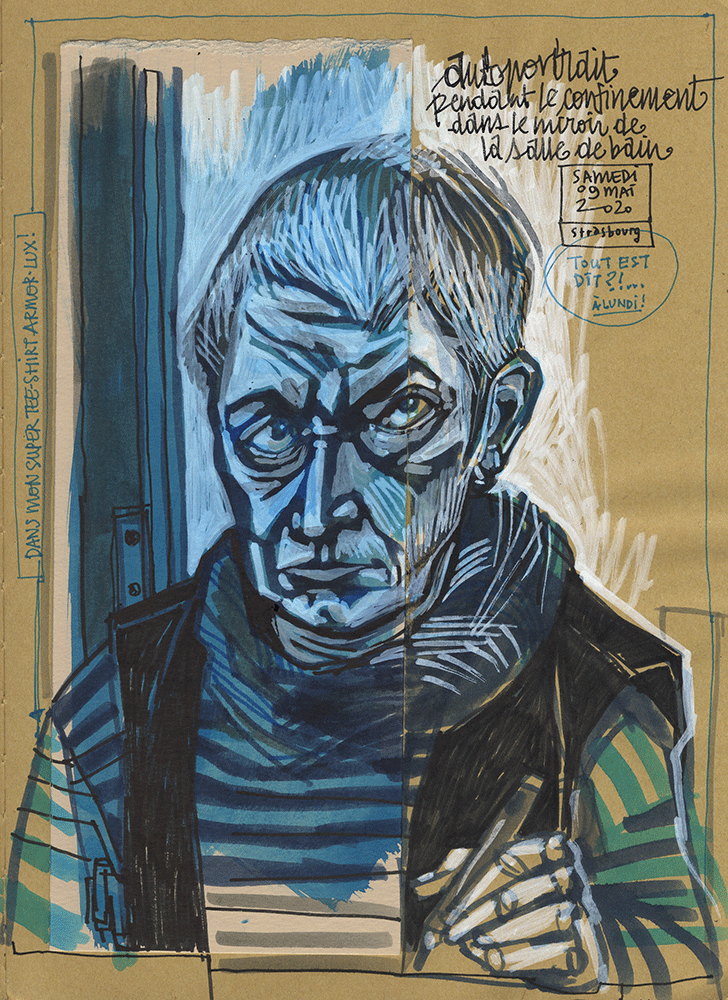 Autoportrait pendant le confinement dans le miroir de la salle de bain
