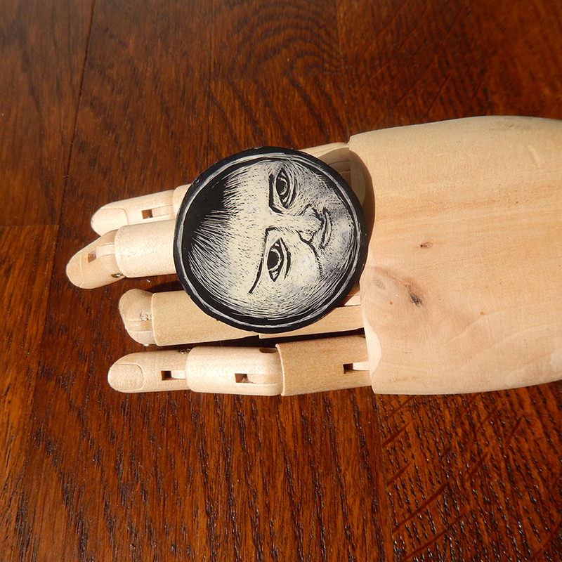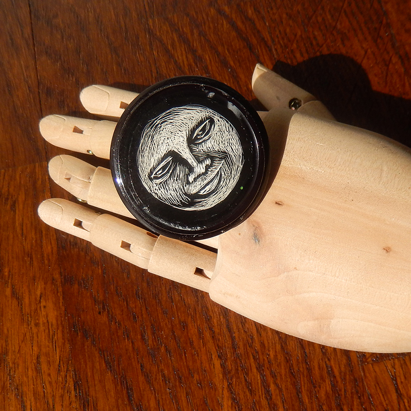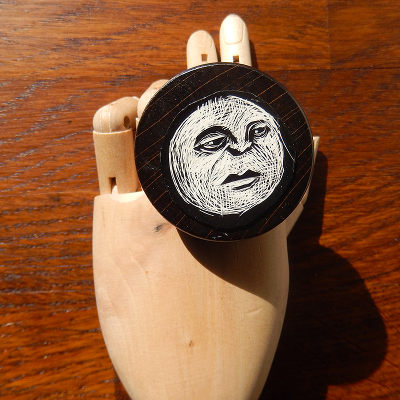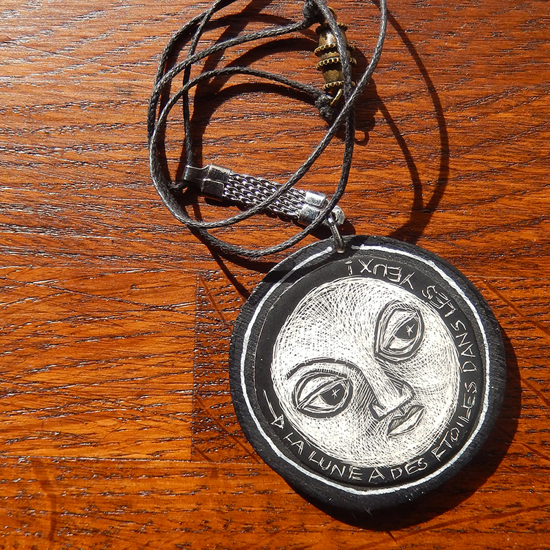Observez la lune aux visages ou masques repoussants ? attirants ?… par le petit bout de la lorgnette. Elle nous scrute immanquablement toutes les nuits, à notre tour de prendre le temps de la mater !